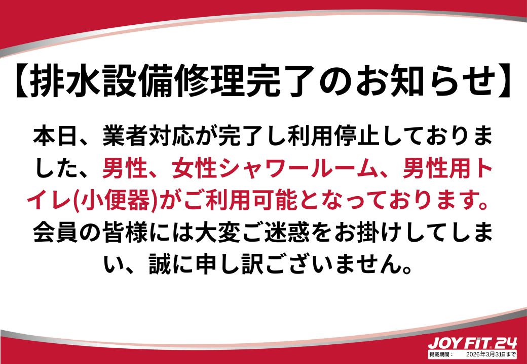 男性、女性シャワー、男子トイレ利用再開のお知らせ