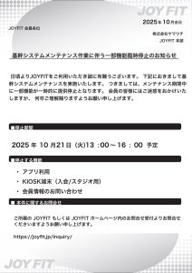 もしくはJOYFITアプリの『お問い合わせ』からも受け付けております。