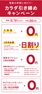 3/31(火)まで! 先着20名様限定※残り20名様※ ・入会金2,200円⇒0円 ・3月会費⇒日割り ・3月オプション利用料⇒0円 ・3月,4月サプリメントサーバー利用料⇒0円