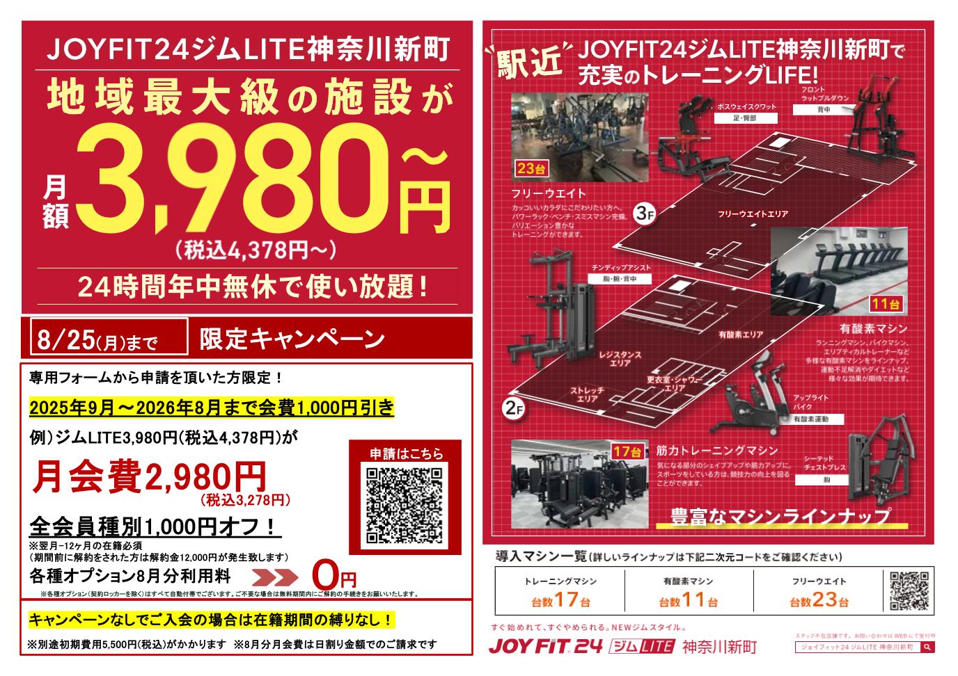 ※JOYFIT24ジムLITE神奈川新町のみ利用可能!