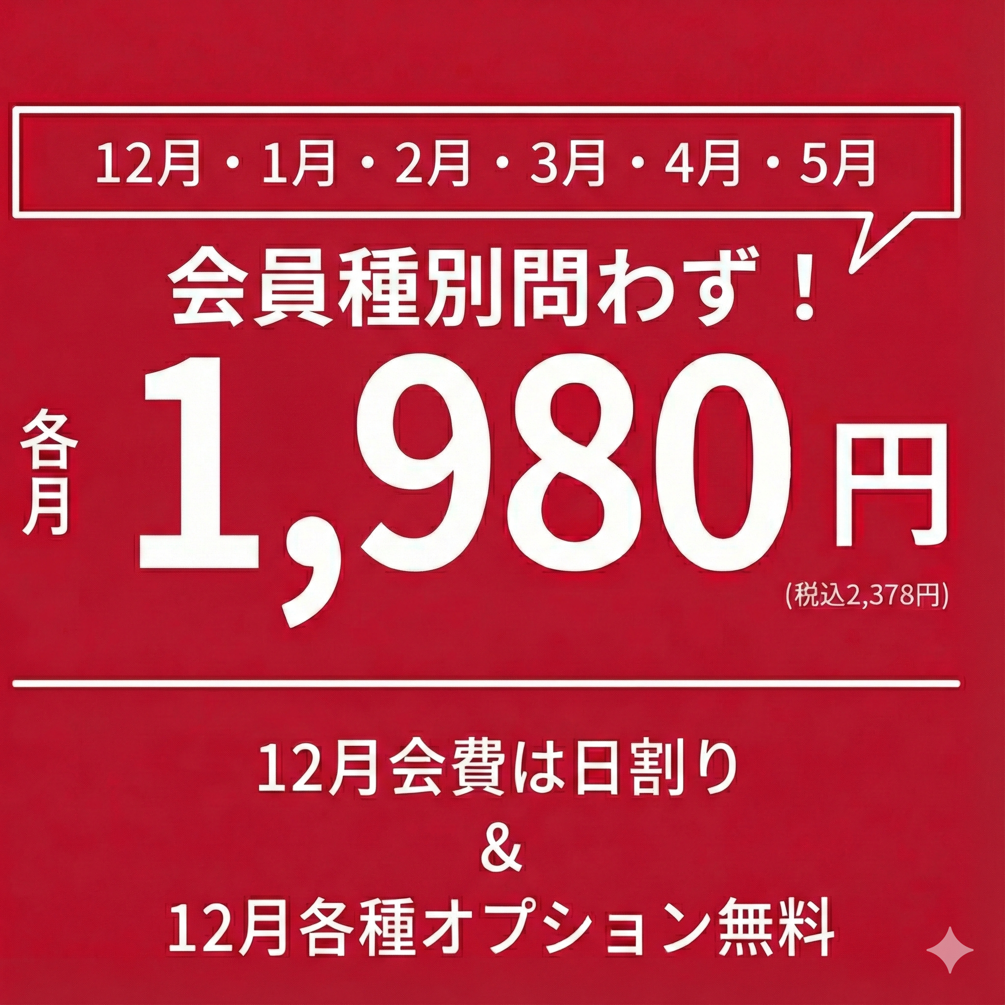 ・2025年12月・2026年1月・2月・3月・4月・5月分月会費1,000円引き