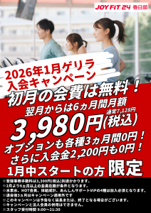 2026.01.24 1月利用開始者限定!ゲリラ入会キャンペーン 1月会費0円 2月~7月まで3,980円(税込)/月