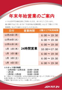 年末年始営業時間のお知らせ/見学・体験の予約/得チケのお知らせ