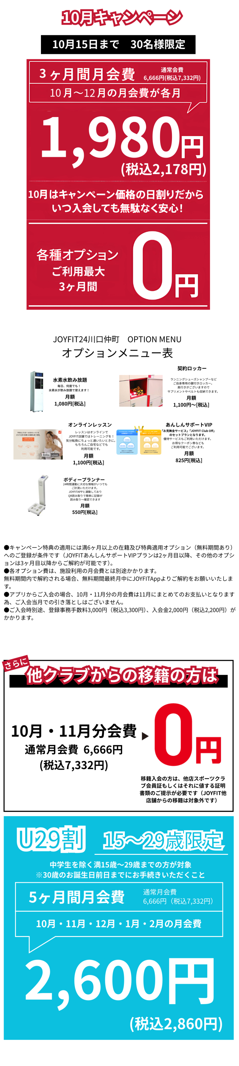 その他 | ■24時間営業のスポーツクラブです。 ■クラブスタッフ常駐時間は 平日/土祝 1200~15:00 / 16:00~19:00 ※毎週金・日曜日は終日スタッフ不在でございます。 ※最終受付は常駐時間終了の45分前までとさせて頂きます。 常駐時間に関しましてはマシンの説明等はご案内させて頂きます。 ■入会/見学でご来館する際は、電話予約をお願い致します。 ■貴重品につきましてはご自身で管理をお願いします。 ■シャンプー・リンス・ボディーソープ・タオルの貸し出しはございませんので、 各自でご用意をお願いいたします。 ※ドライヤーは貸し出しておりますので、ご自由にお使いください。 ☆入会を悩まれている方はこちらをタップ☆ ![]() |