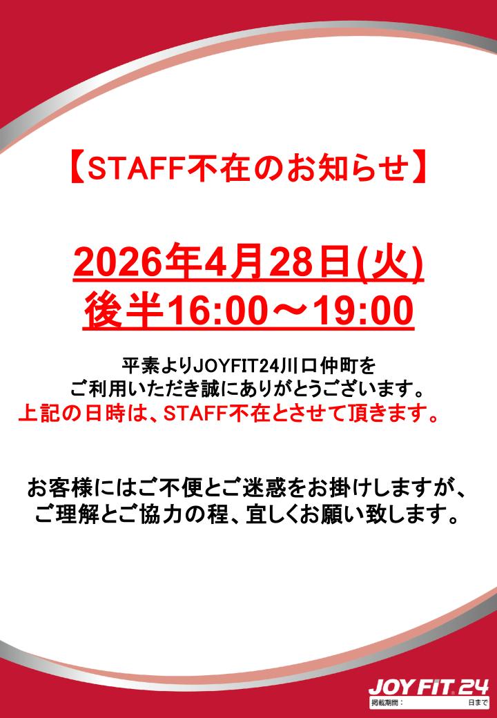 STAFF不在のお知らせ