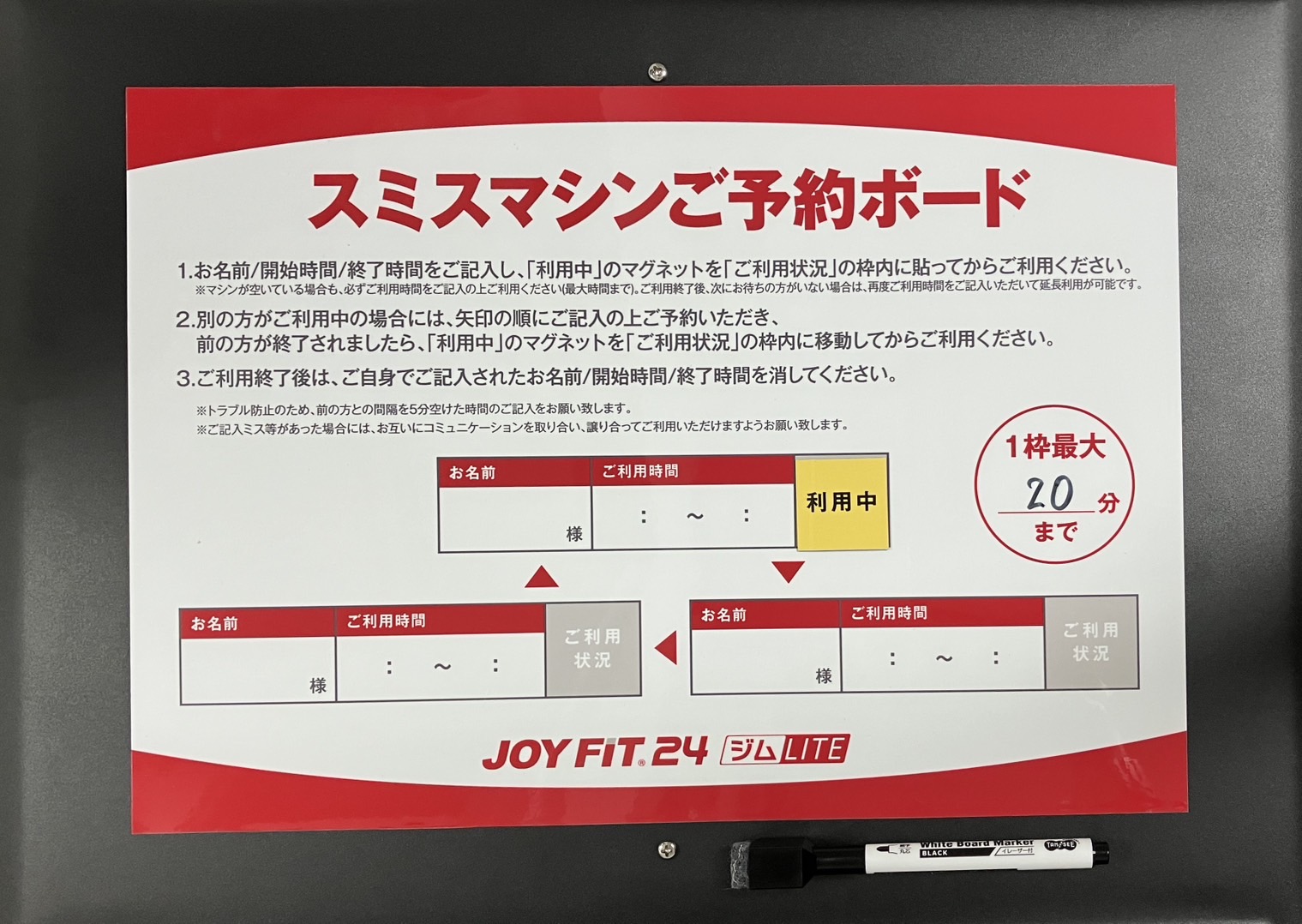 ・1枠最大20分まででご記入となります。