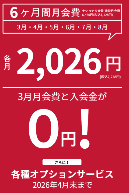 4月から8月までの6ヶ月間会費⇒各月税込2,228円!