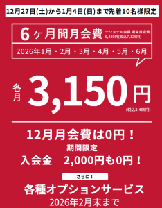 ☆12月のご入会者様は0円!1月ご入会者様は3,465円の日割りだからいつ入会してもお得☆