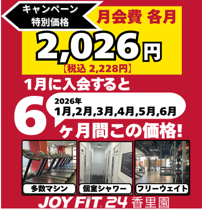 1月に入会すると 6か月間、月会費が2,026円(税別)に!