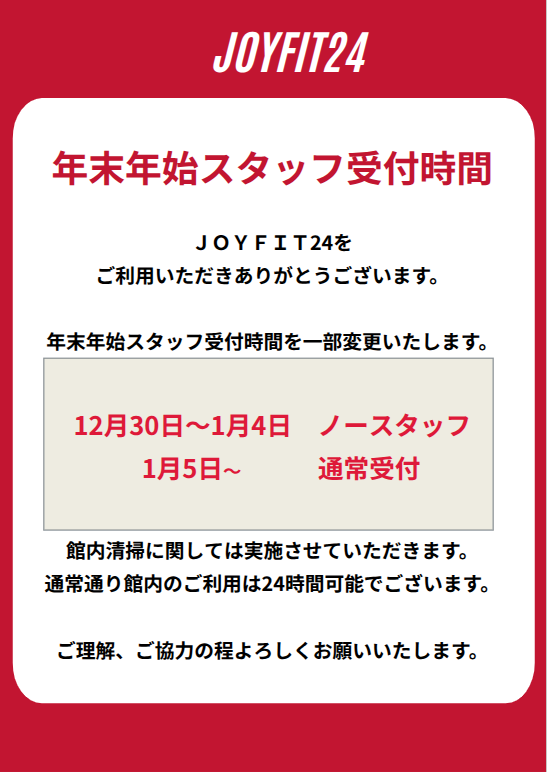 年末年始 営業時間のお知らせ