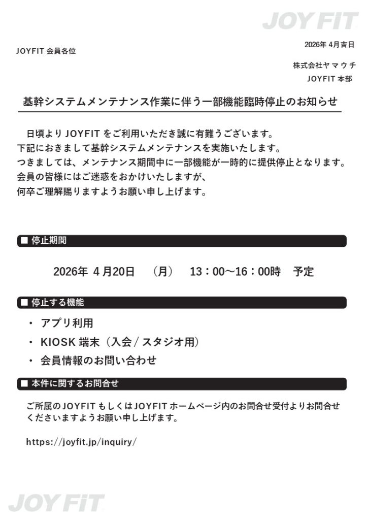 【2026/4/20(月)】システムメンテナンスのお知らせ