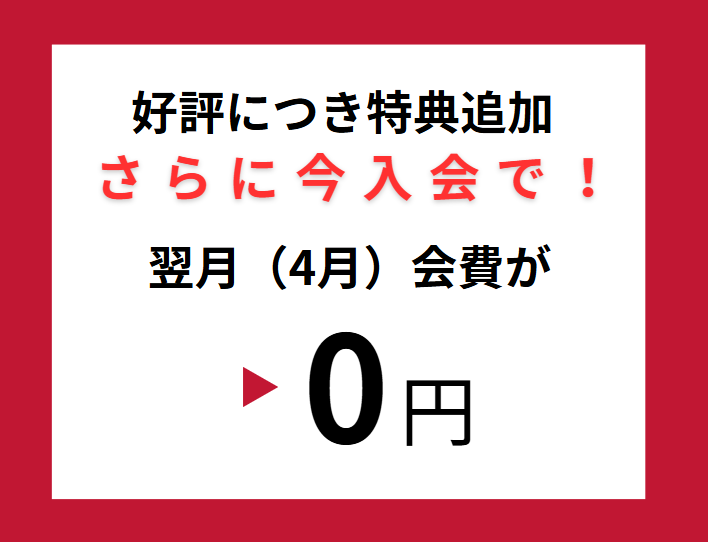 ・翌月(4月)会費0円 ←今入会で追加特典!
