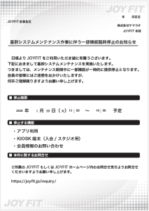 システムメンテナンスのお知らせ