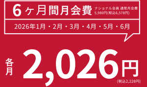 2026年1月~2026年6月までの毎月の会費が2,026円(税込2,228円)ご利用いただけます!