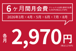 2026年3月~2026年8月までの毎月の会費が2,970円(税込3,278円)ご利用いただけます!