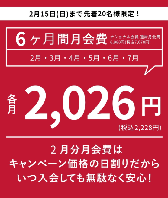 ・2月~7月の月会費(通常 7,678円税込) ➔ 各月2,228円(税込)