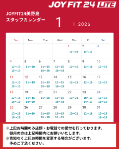 1月のスタッフ常駐時間でございます。