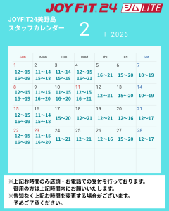 2月のスタッフ常駐時間でございます。