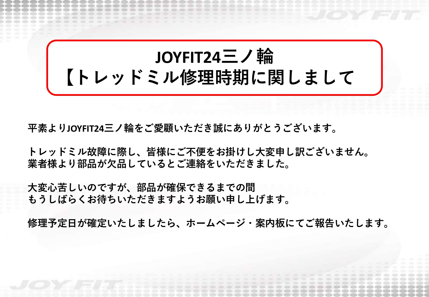 JOYFIT24三ノ輪 【トレッドミル修理時期に関しまして】