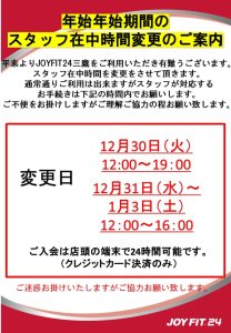 年末年始期間はスタッフ受付時間を変更させて頂きます。
