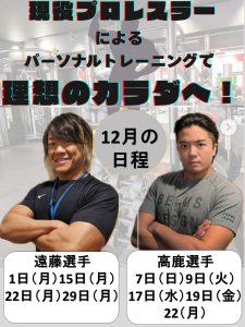 12月のパーソナルトレーニング日程