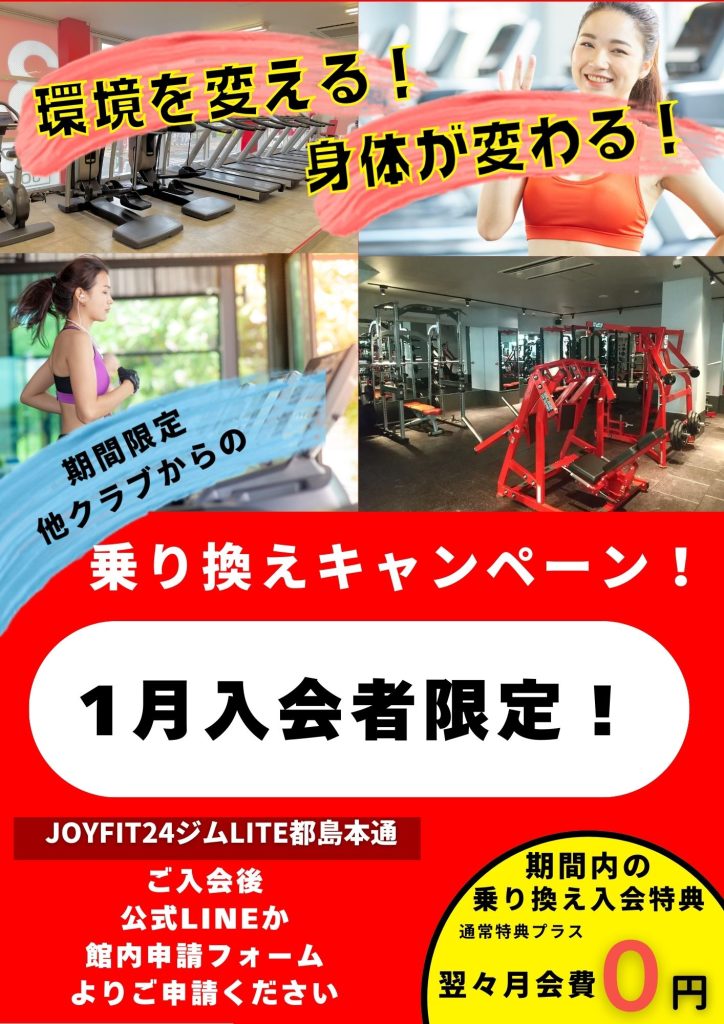 1月入会者の期間限定で、他クラブからの乗り換え入会の方は翌々月も0円!