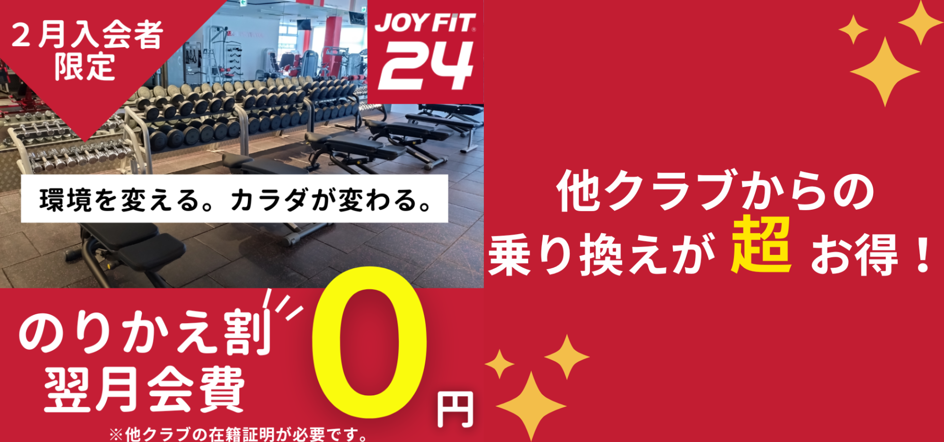 2月入会者の期間限定で、他クラブからの乗り換え入会の方は翌月会費0円!