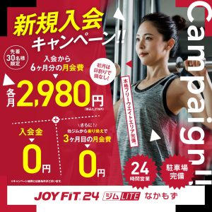 ※JOYFITご退会から12ヶ月以内の方は当キャンペーンをご利用いただけませんのでご注意ください。その場合、通常料金での入会になりますので、差額を次月以降の会費に加えて頂戴致します。ご了承くださいませ。