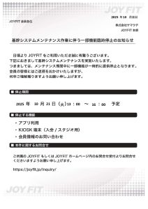 【10月21日13:00~】メンテナンスに伴うアプリ使用不可について