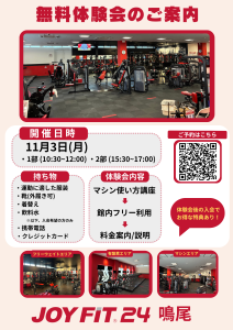 スタッフ常駐時間 (平日) 12:00〜15:00/17:00〜20:00 (土祝) 11:00~15:00/16:00~18:00 ※フロント入会受付は30分前まで 【重要】 2025年2月1日(土)より毎週水・金・日曜日は終日スタッフ不在 スタッフ不在時のお電話でのお問い合わせはJOYFIT24阪神尼崎駅前まで TEL:06-4869-7725 |