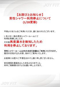 (2/9更新)男子シャワー利用停止のお知らせ