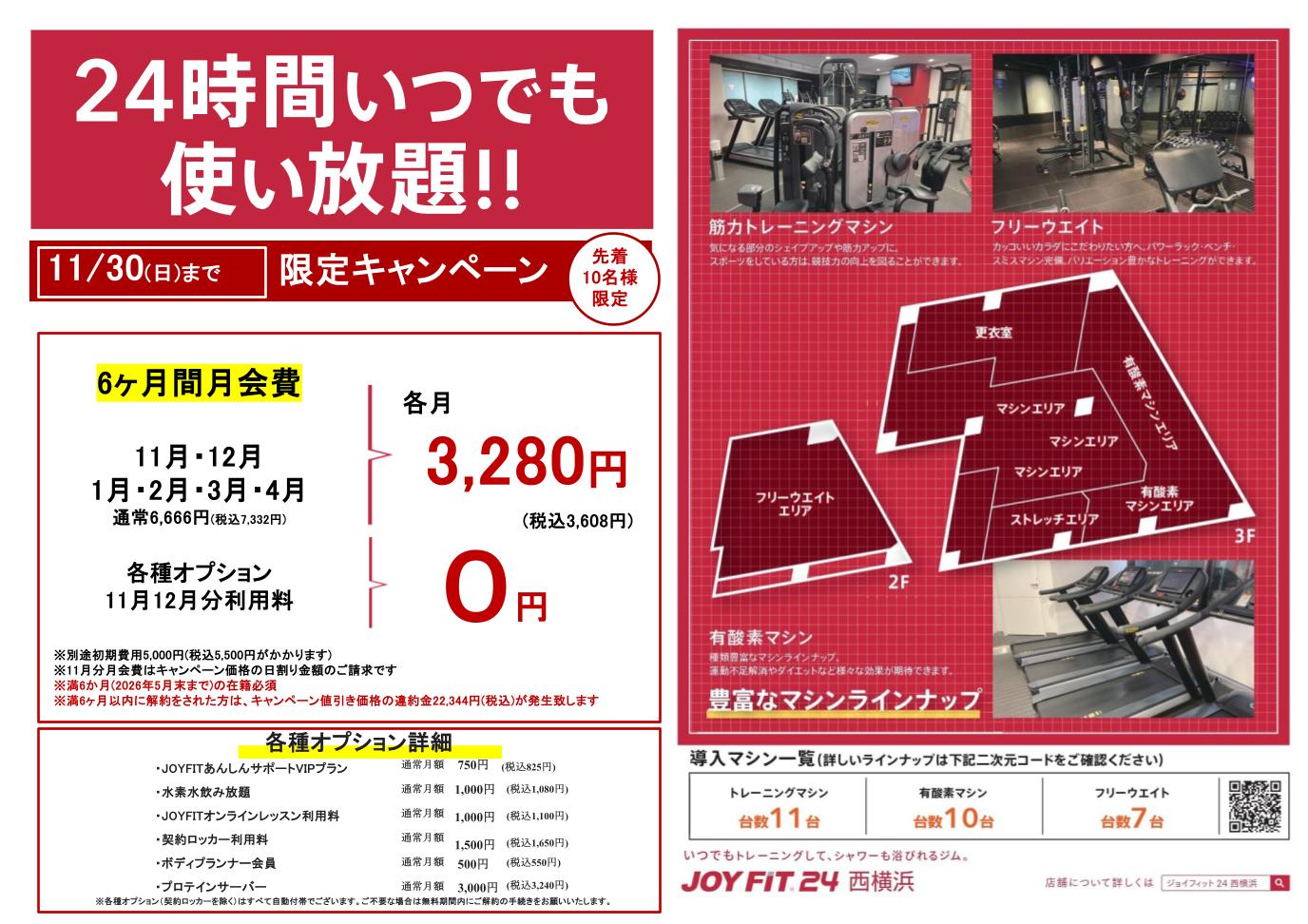JOYFIT24西横浜では無料体験を実施しておりません。