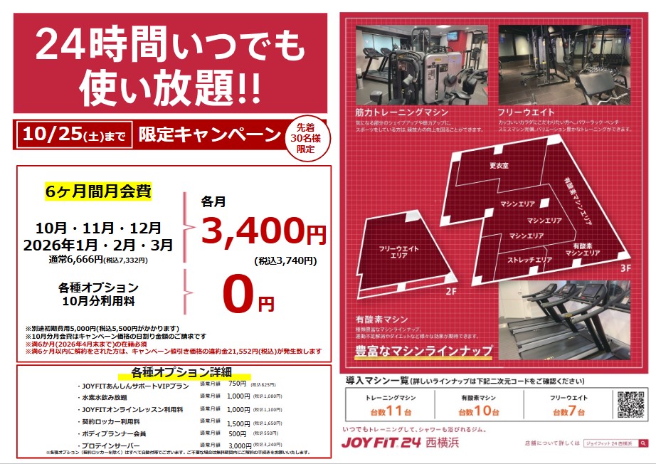 JOYFIT24西横浜では無料体験を実施しておりません。