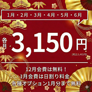 2026年1月から2026年6月分月会費が3,150円(税込3,465円)! オプション利用料1月分までが0円! ※満6ヶ月の在籍必須