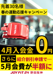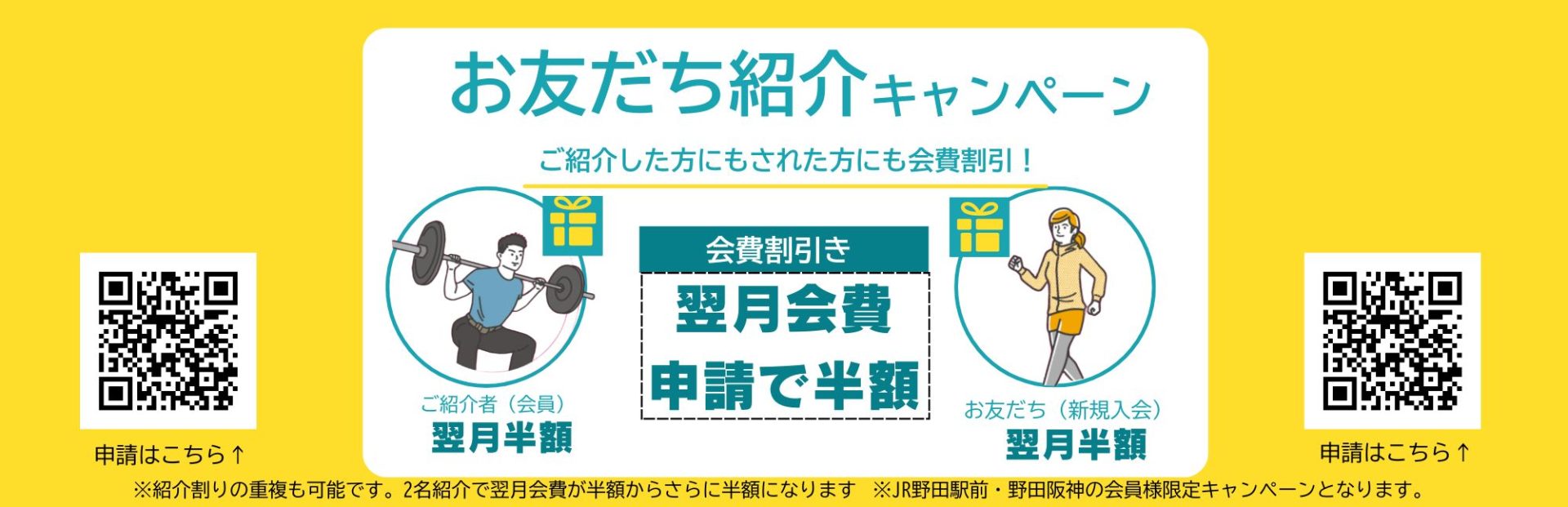 JOYFIT24野田阪神・JOYFIT24JR野田駅前では、既存会員様からのご紹介でお得にご入会いただける