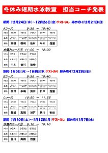 冬休み短期水泳教室 担当コーチ一覧はこちら♪