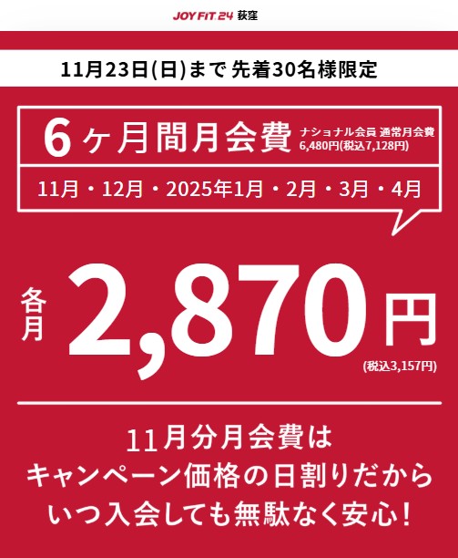 11月~26年4月までの月会費が2,800円(税込3,157円)!