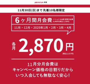 11月~26年4月までの月会費が2,800円(税込3,157円)! ※キャンペーン適用は満6ヶ月(2026年5月末)の継続が必須でございます。