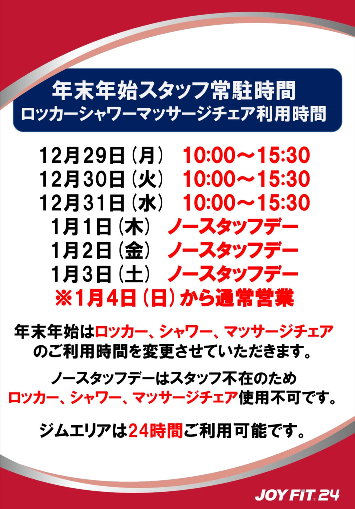1/1(木)〜1/3(土) →ノースタッフデーのため対応できません。