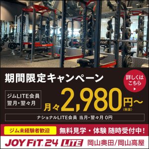 〒700-0933 岡山県岡山市北区奥田2丁目1番地10号 JOYFIT24 LITE 奥田