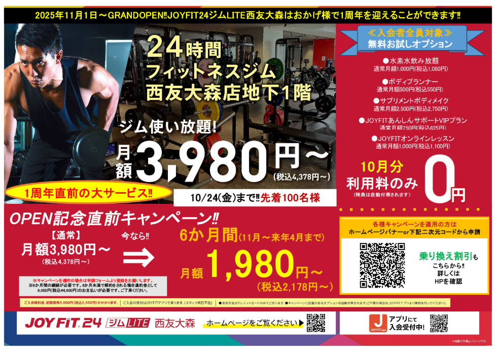 他店からJOYFIT24ジムLITE西友大森へ乗り換えor掛け持ちで…豪華な特典をご用意してます!!
