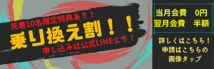 【のりかえキャンペーン】 他クラブからのりかえの場合は 当月会費➡0円 翌月会費➡0円 ※キャンペーン適用にはLINEにて申請が必要です。