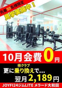 〒555-0032 大阪府⼤阪市⻄淀川区⼤和⽥2-2-43 関西スーパー大和田店1F JOYFIT24 ジムLITE メラード大和田 ![]() |