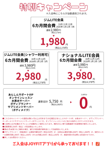 ●こちらのキャンペーンの適用は満6ヶ月以上(4月末まで)の在籍及びあんしんサポートVIP、水素水サーバー、ボディプランナー、オーダーメイドサプリメントサーバー(ボディメイク)、オンラインレッスンへのご加入を条件とさせていただきます。