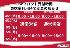 【スタッフ対応時間】 平日 :9:00-23:00 土日祝:9:00-21:00 ※年末年始、GW、お盆など、 対応時間の変更がございます 【フロント&電話受付時間】 平日 :9:00-15:00/17:00-20:00 土日祝:9:00-18:00 ※年末年始、GW、お盆など、 対応時間の変更がございます 【更衣室/シャワー利用時間】 平日 :8:55-23:00 土日祝:8:55-21:00 ※年末年始、GW、お盆など、 対応時間の変更がございます 【ノースタッフデー】 平日5のつく日は、 ノースタッフデー(5日/15日/25日) ・スタッフ終日不在 ・スタジオプログラム全面休講 ・男女更衣室の終日利用不可 ※マシンエリアのみ利用可能 ※5のつく日が 土日祝日の場合は通常営業 |
