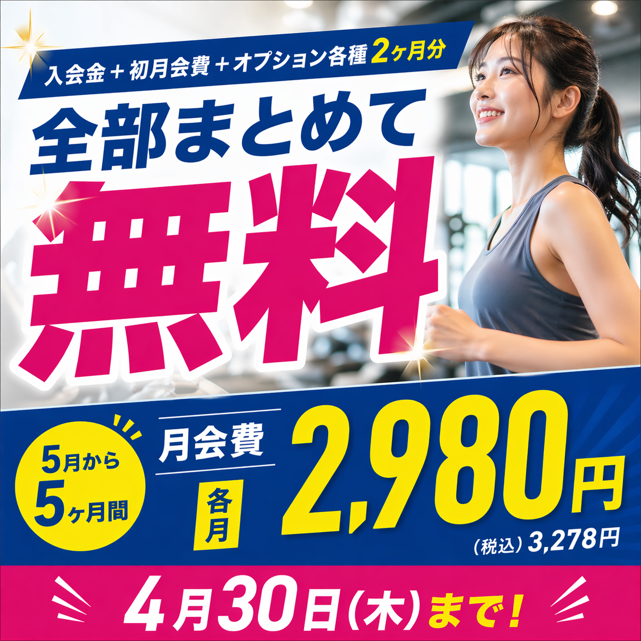 5月から5ヶ月間各月2,980円(税込)3,278円