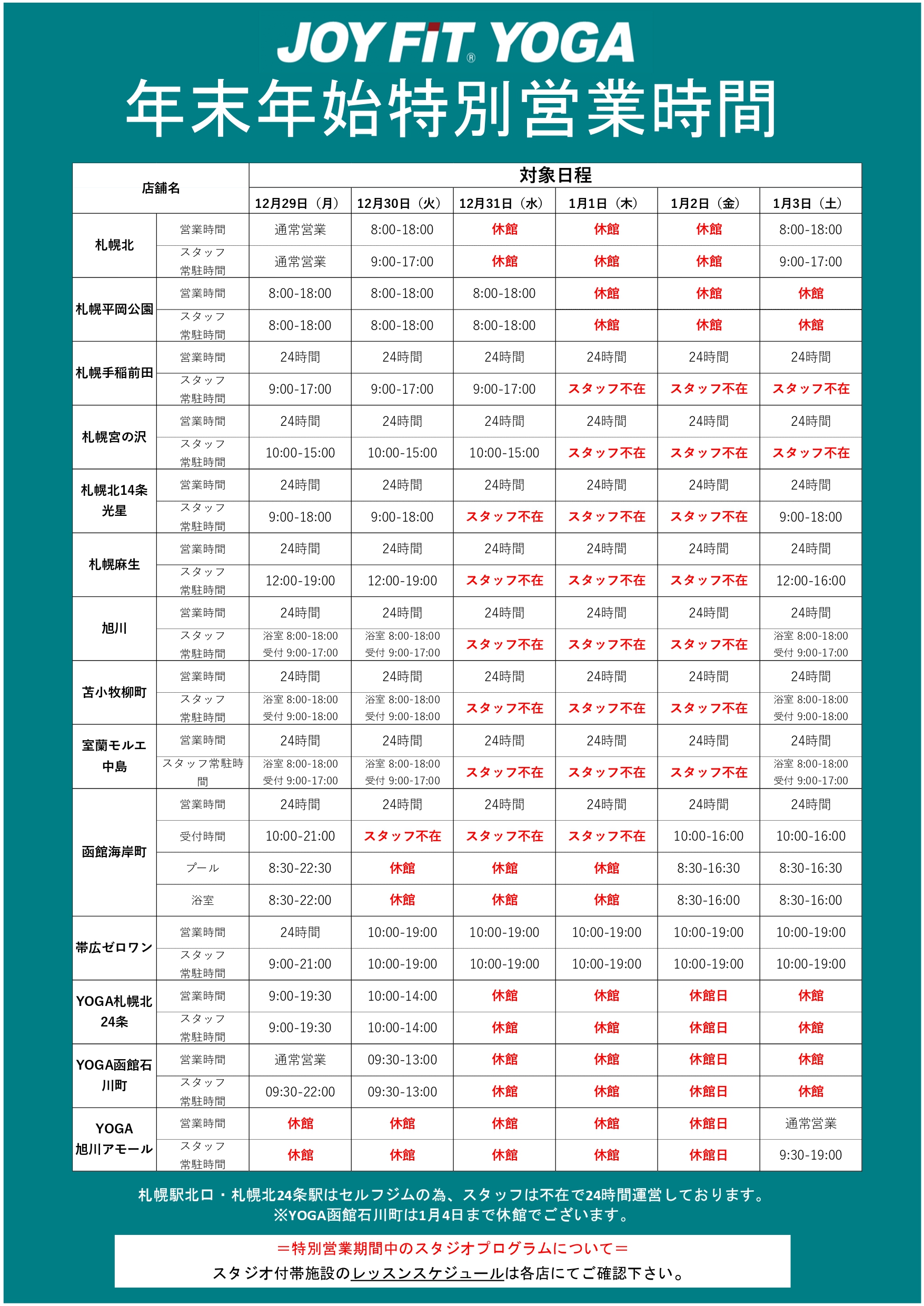 12月29日(月)、30日(火)は特別営業時間