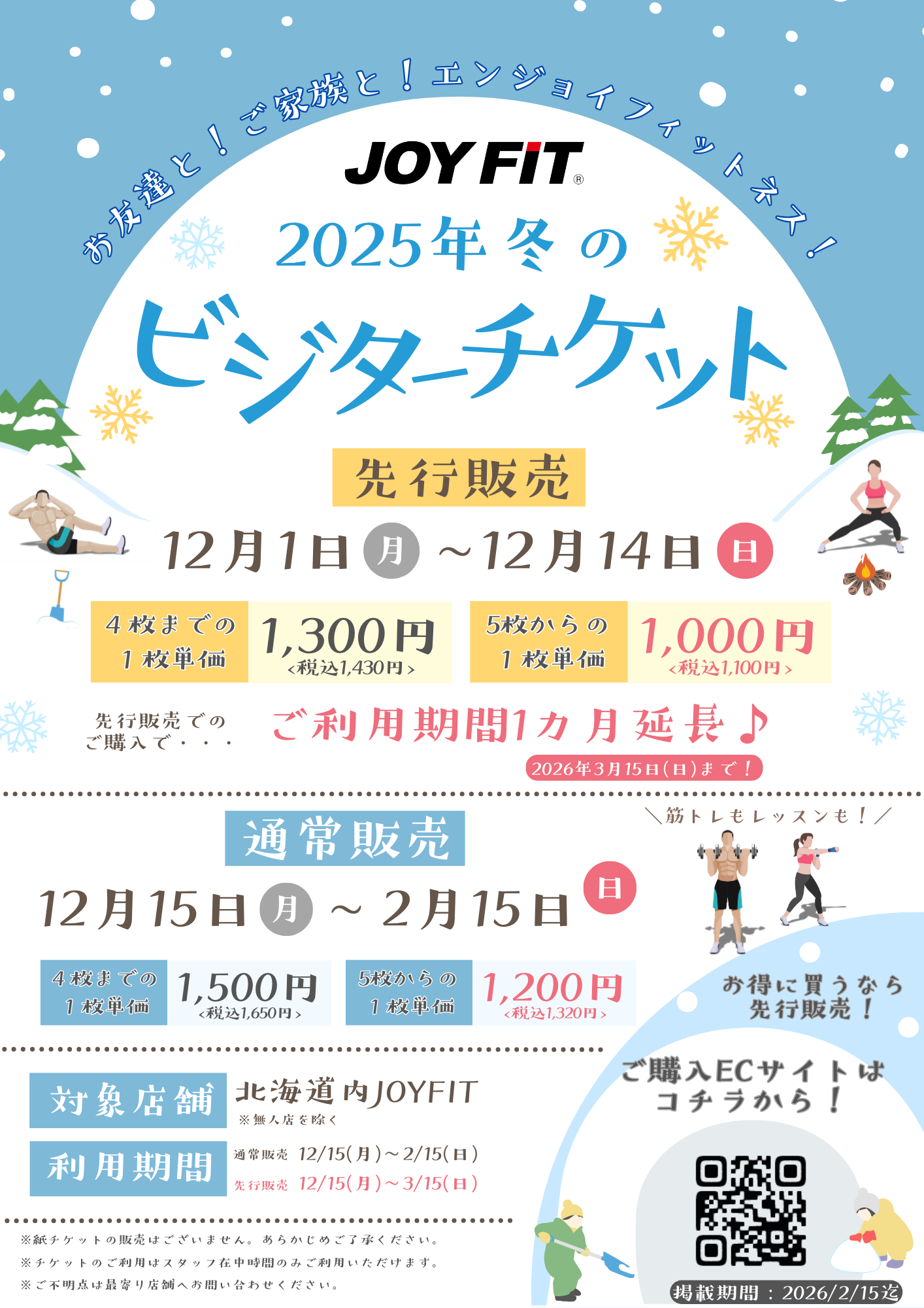 今年もお友達やご家族とのフィットネスに最適な「2025年 冬のビジターチケット」の先行販売を開始しました!