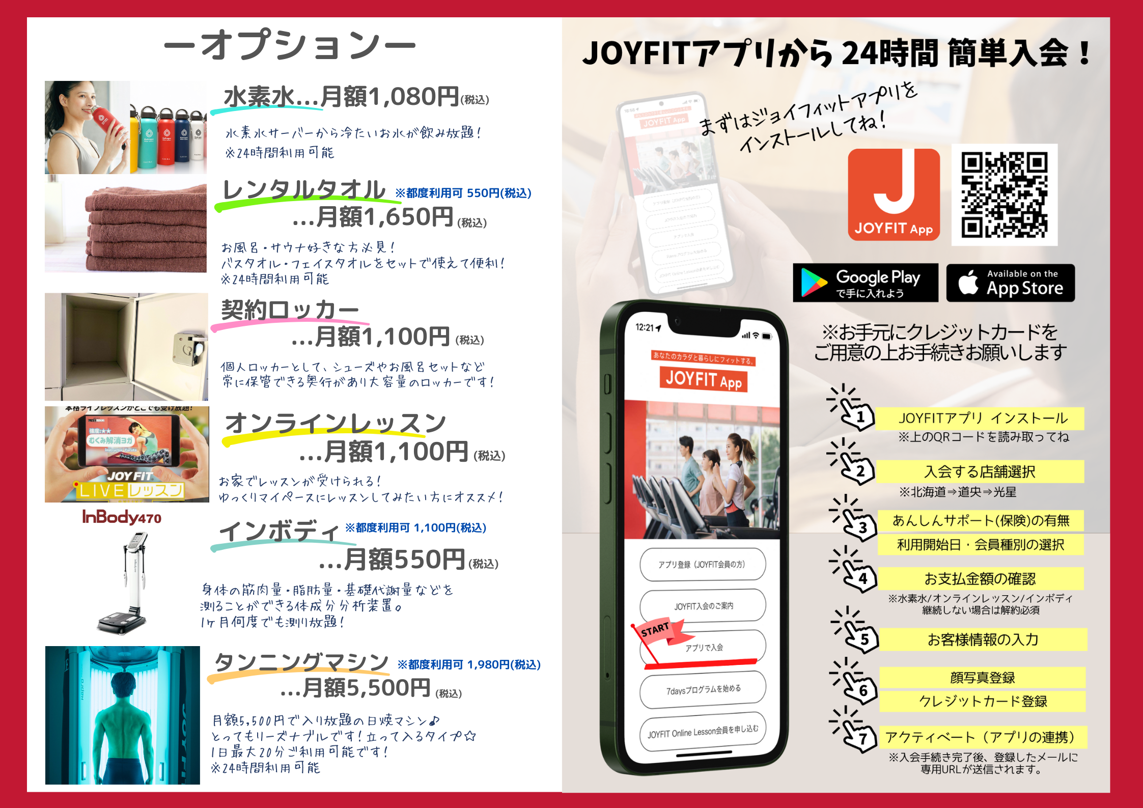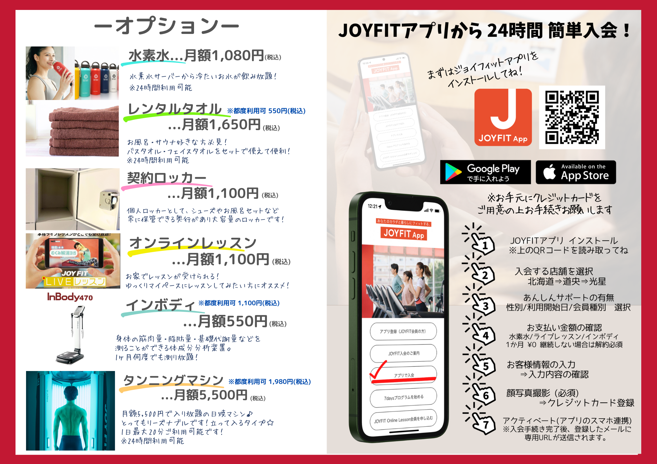 オプションの申込みは店頭またはアプリからお願いいたします。