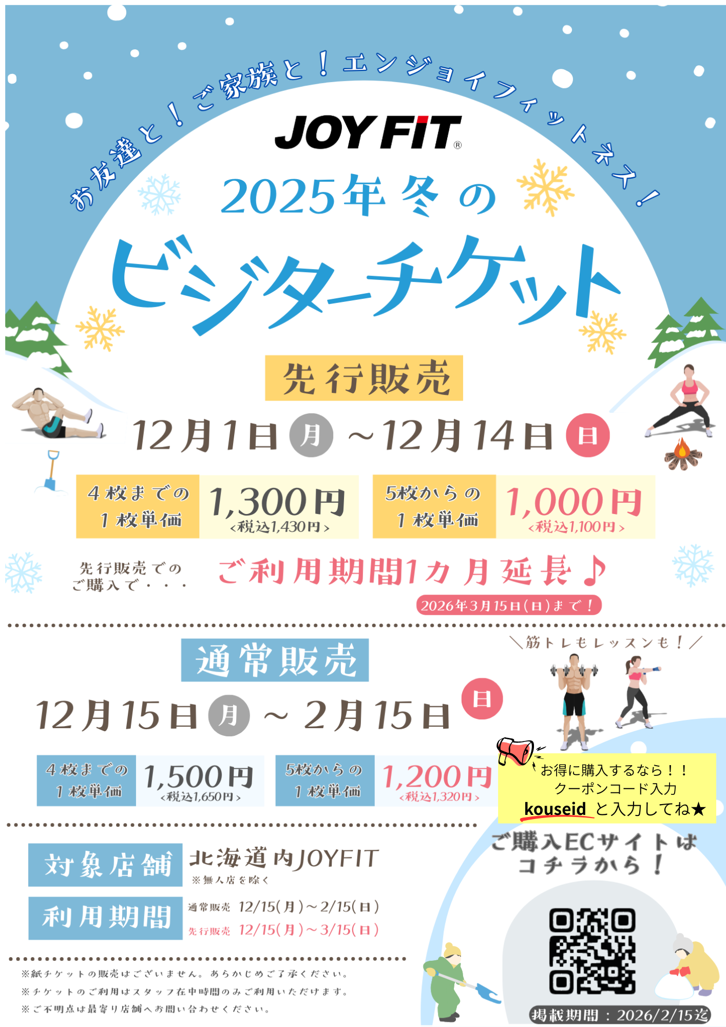 2025.12.01 冬のビジターチケット販売中 まずはビジターで利用してみよう!!